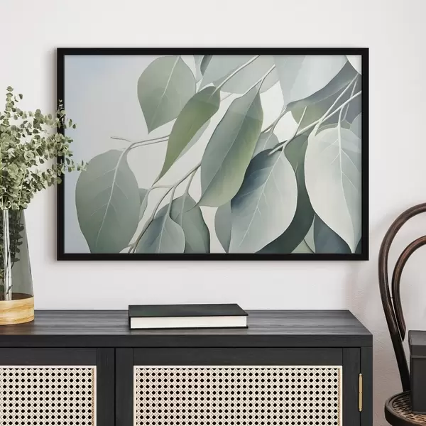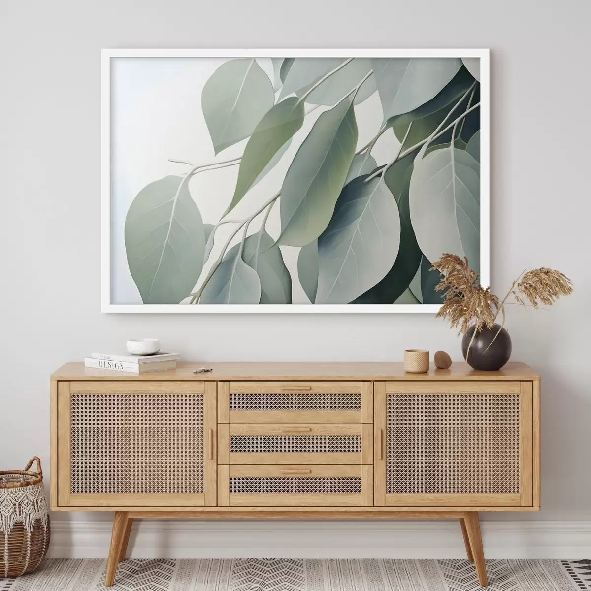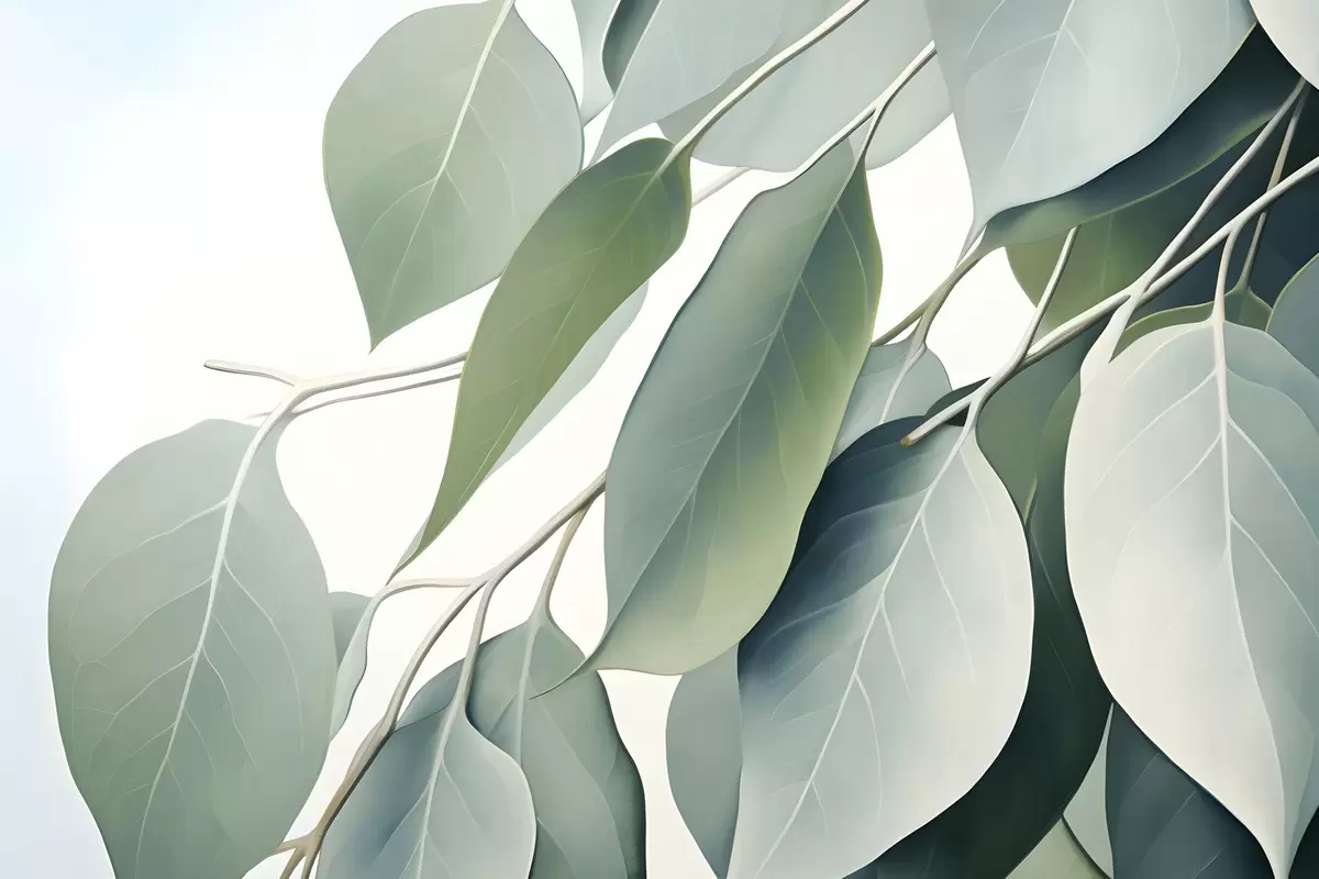 Poster Foglie di eucalipto con una palette di colori tenui e smorzati, un'estetica rilassante e naturale f44410