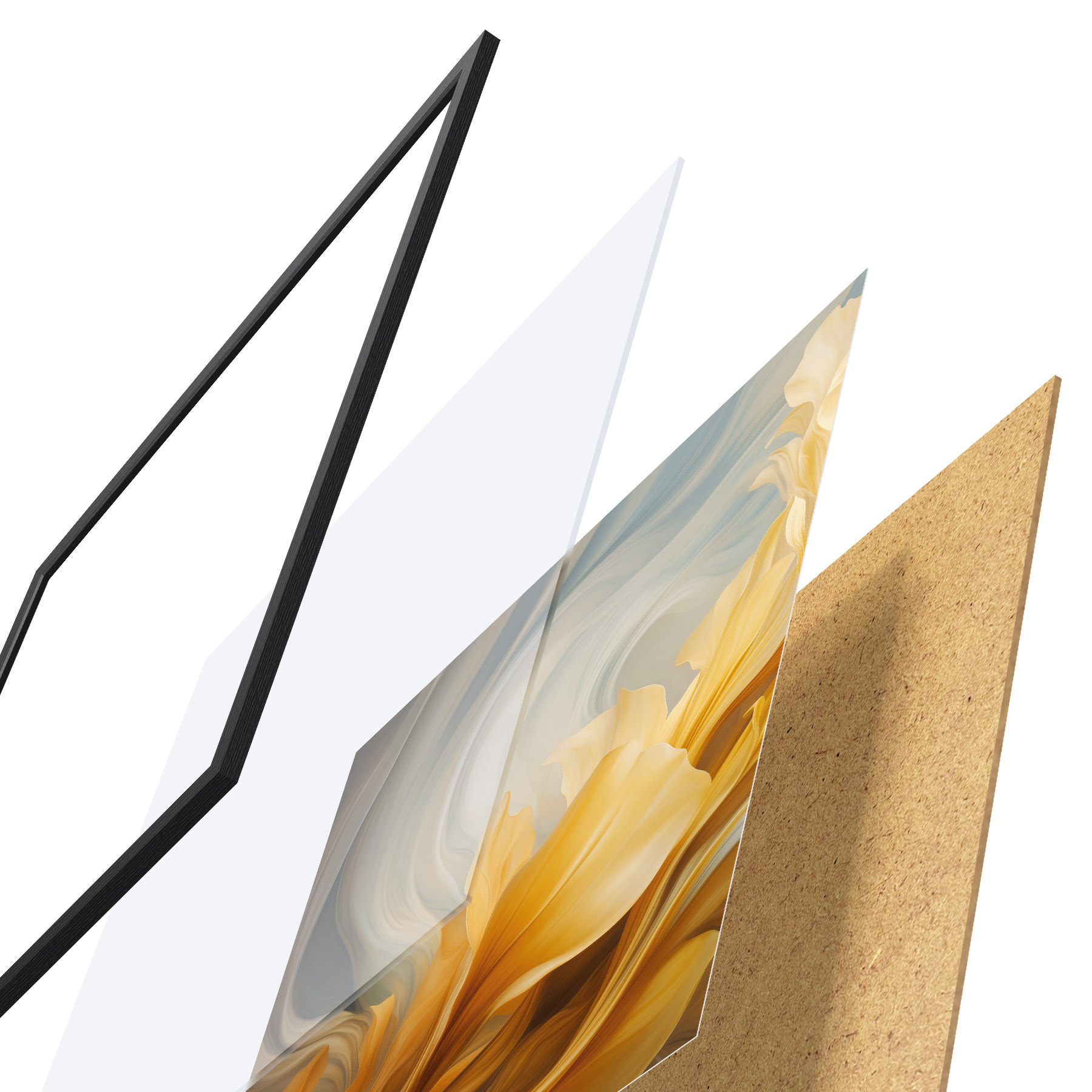 Il poster è composto da cornice, plexiglass, immagine stampata e supporto in truciolato. Il poster può essere immediatamente appeso alla parete grazie ai supporti sul retro.