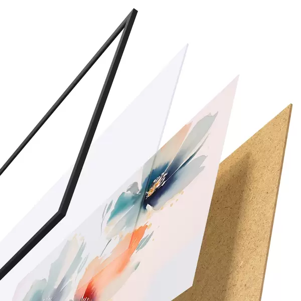 Il poster è composto da cornice, plexiglass, immagine stampata e supporto in truciolato. Il poster può essere immediatamente appeso alla parete grazie ai supporti sul retro.