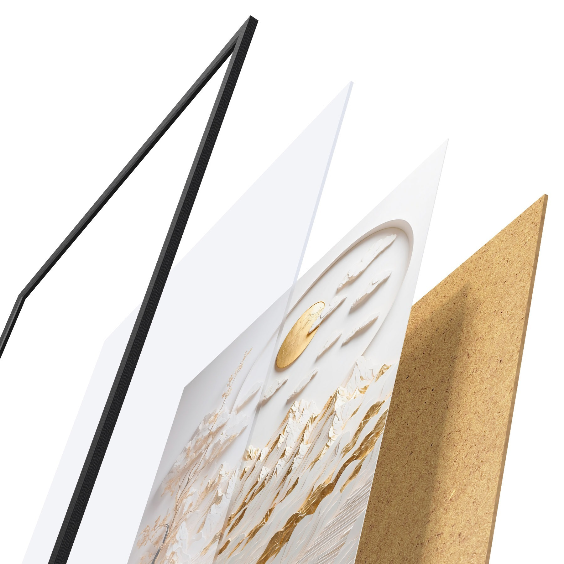 Il poster è composto da cornice, plexiglass, immagine stampata e supporto in truciolato. Il poster può essere immediatamente appeso alla parete grazie ai supporti sul retro.