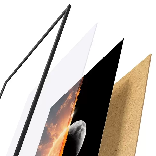 Il poster è composto da cornice, plexiglass, immagine stampata e supporto in truciolato. Il poster può essere immediatamente appeso alla parete grazie ai supporti sul retro.