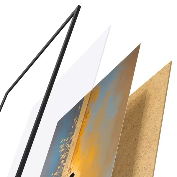 Il poster è composto da cornice, plexiglass, immagine stampata e supporto in truciolato. Il poster può essere immediatamente appeso alla parete grazie ai supporti sul retro.