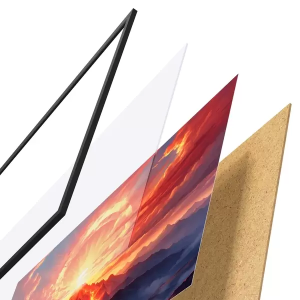 Il poster è composto da cornice, plexiglass, immagine stampata e supporto in truciolato. Il poster può essere immediatamente appeso alla parete grazie ai supporti sul retro.