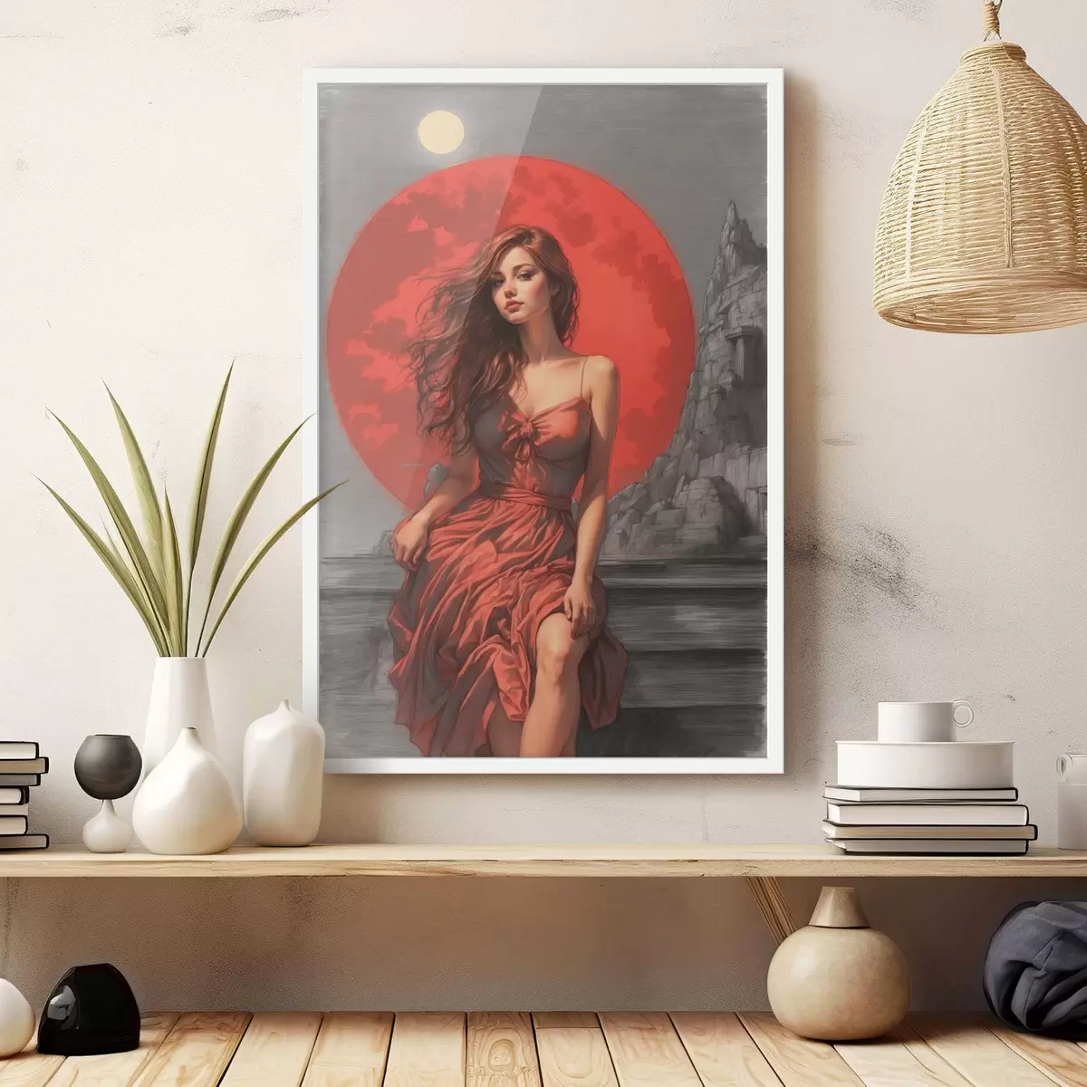 Poster Ragazza su sfondo lunare rosso Nr f44448