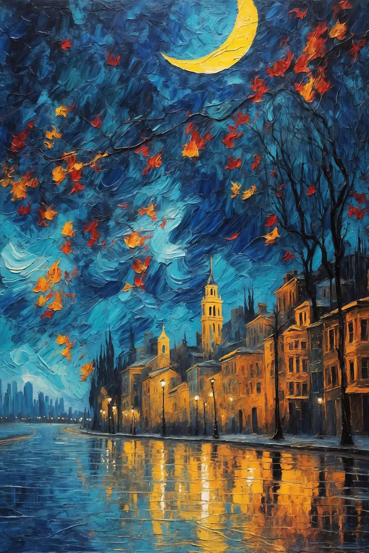 Poster Notte a Londra in stile pittura acrilica Nr f44453