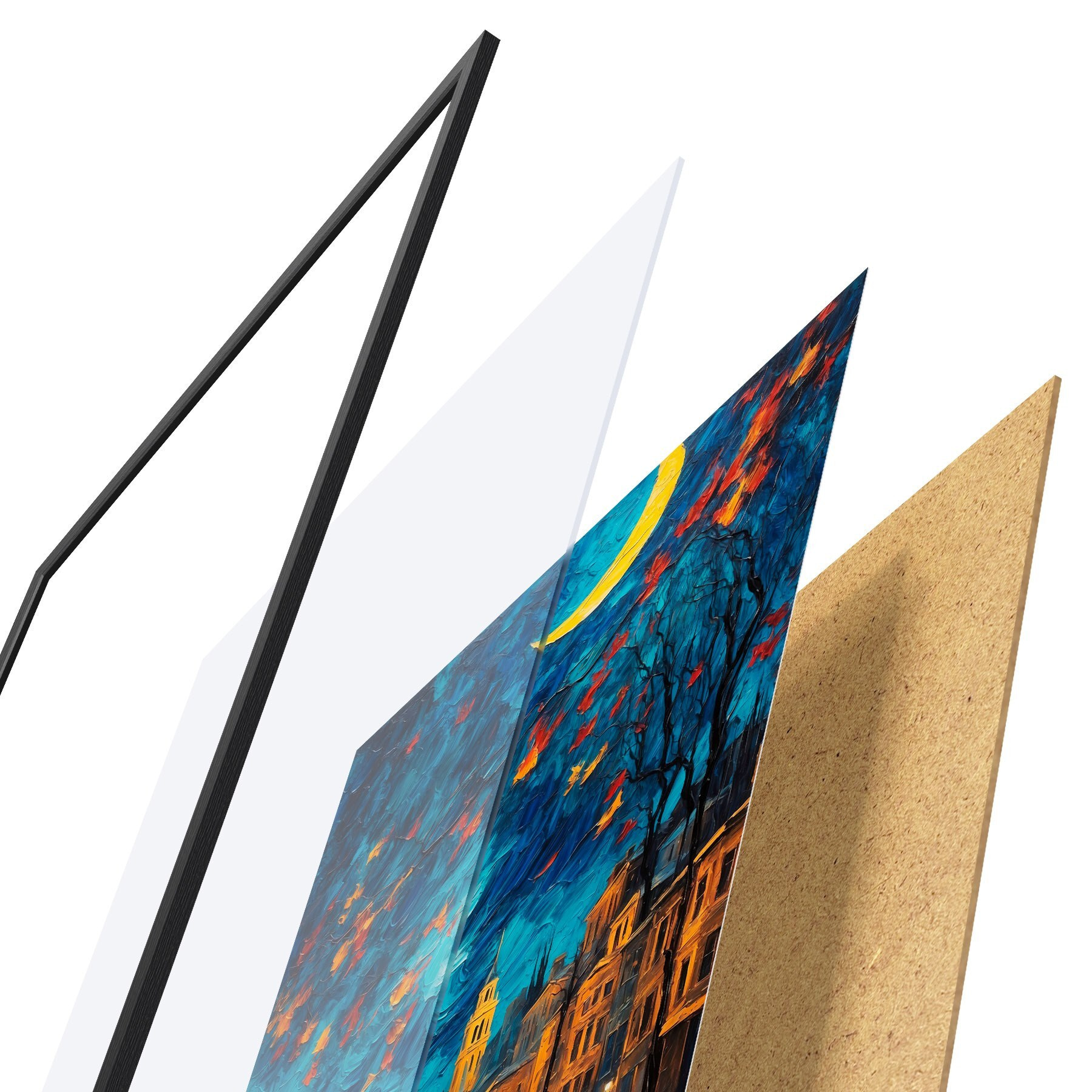 Il poster è composto da cornice, plexiglass, immagine stampata e supporto in truciolato. Il poster può essere immediatamente appeso alla parete grazie ai supporti sul retro.