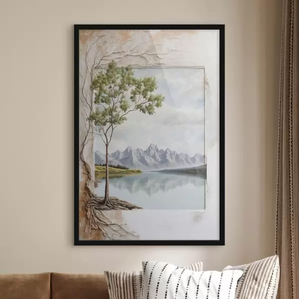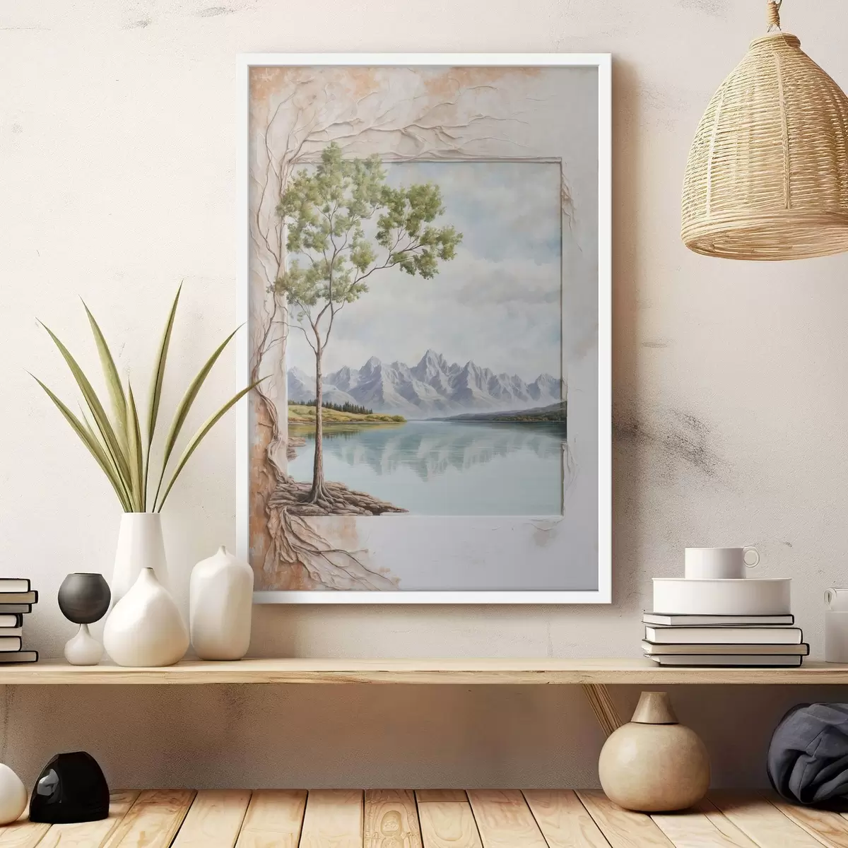 Poster Vista sul lago e montagne innevate nell'inquadratura f44458