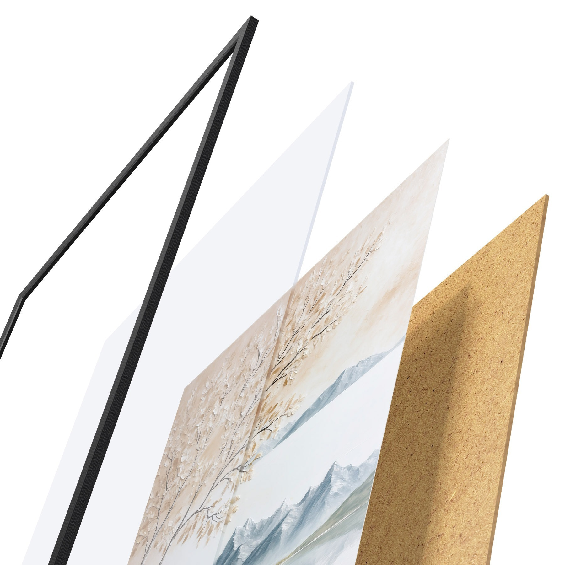 Il poster è composto da cornice, plexiglass, immagine stampata e supporto in truciolato. Il poster può essere immediatamente appeso alla parete grazie ai supporti sul retro.