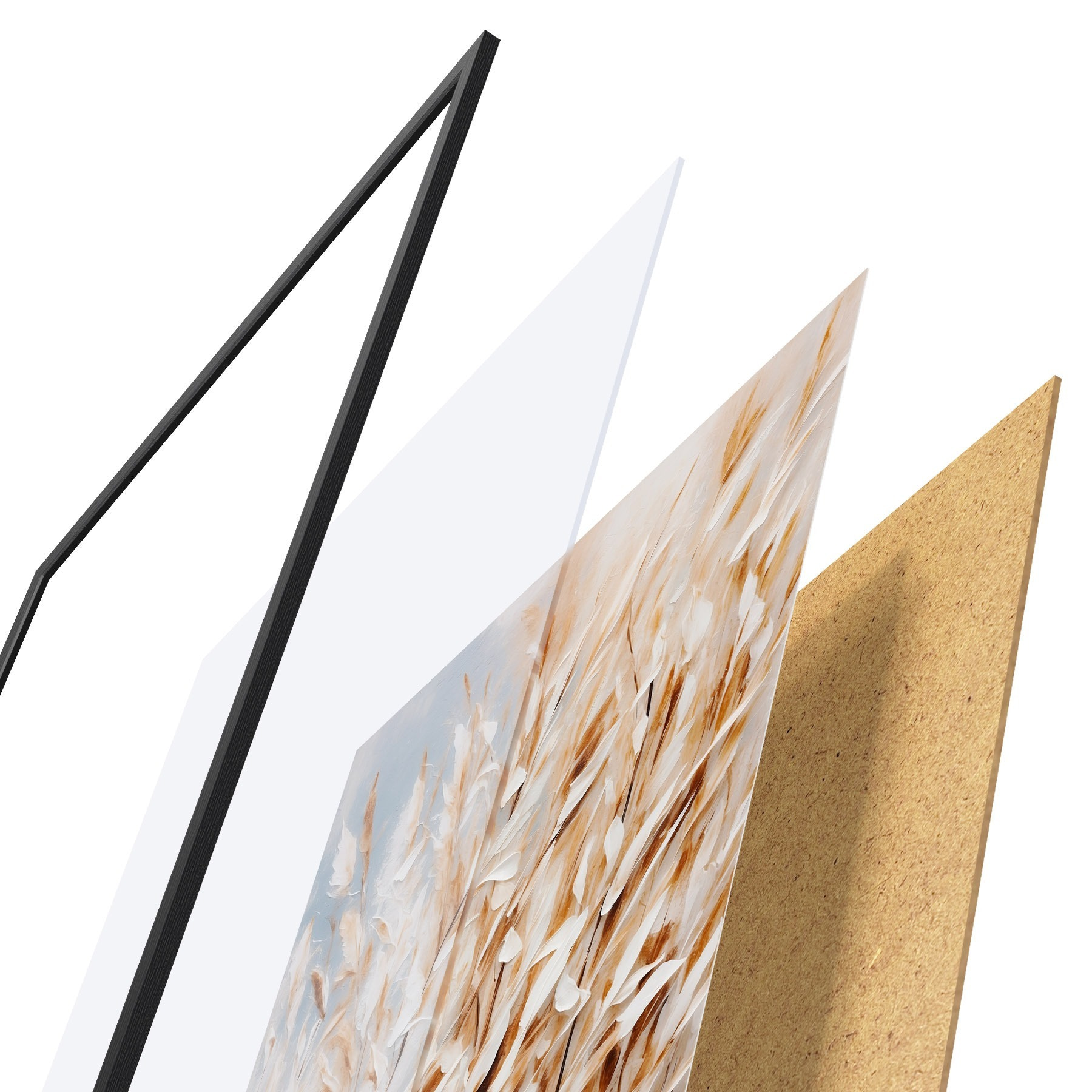 Il poster è composto da cornice, plexiglass, immagine stampata e supporto in truciolato. Il poster può essere immediatamente appeso alla parete grazie ai supporti sul retro.