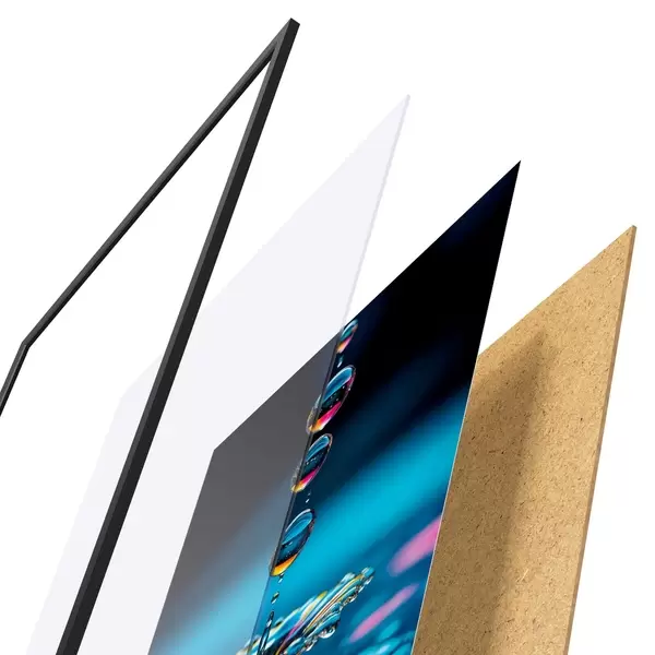 Il poster è composto da cornice, plexiglass, immagine stampata e supporto in truciolato. Il poster può essere immediatamente appeso alla parete grazie ai supporti sul retro.