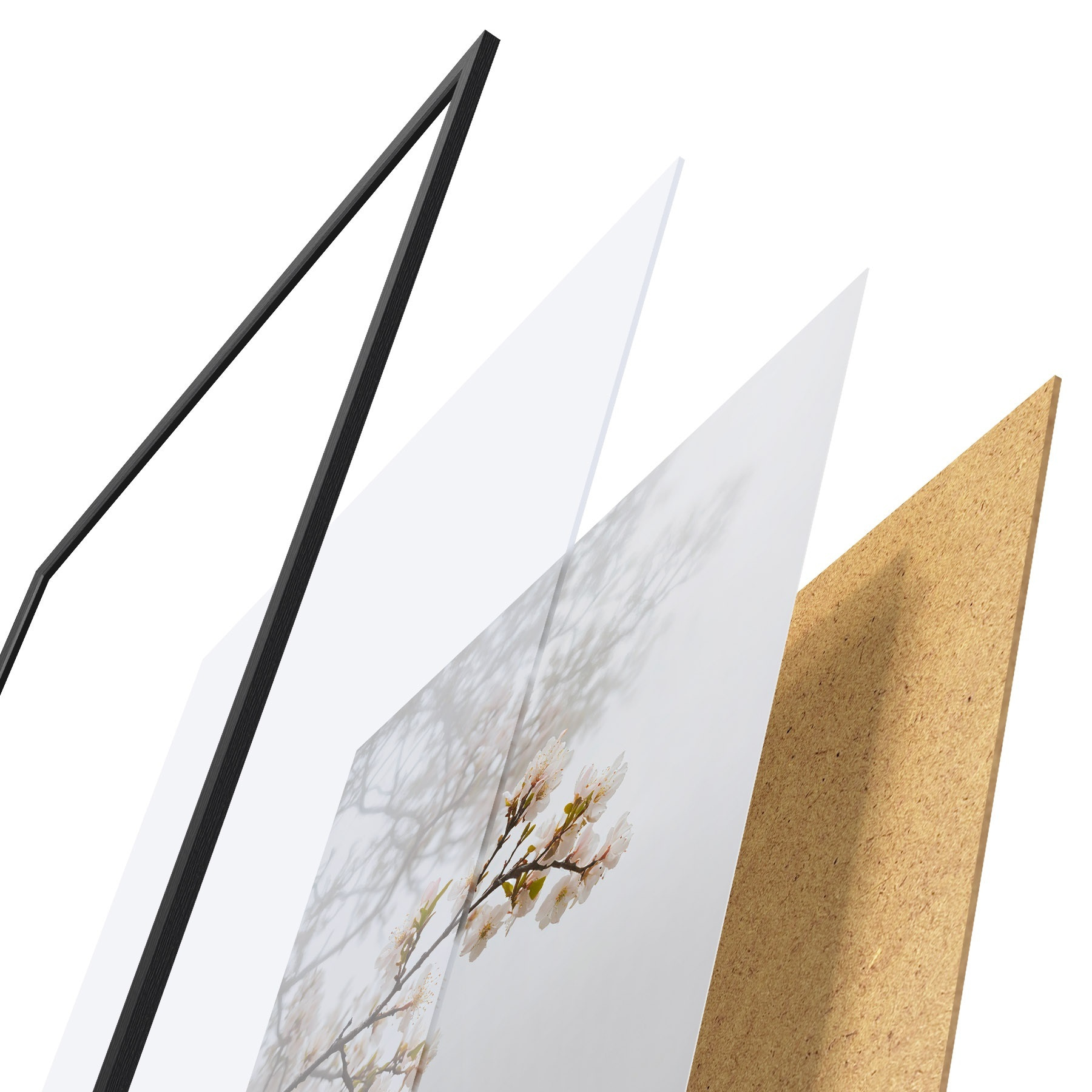 Il poster è composto da cornice, plexiglass, immagine stampata e supporto in truciolato. Il poster può essere immediatamente appeso alla parete grazie ai supporti sul retro.