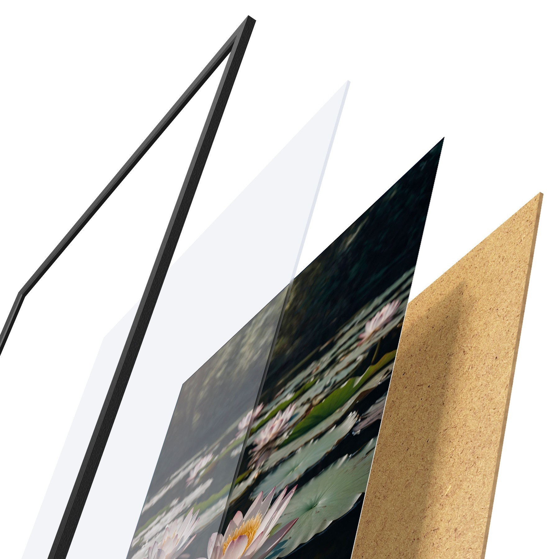 Il poster è composto da cornice, plexiglass, immagine stampata e supporto in truciolato. Il poster può essere immediatamente appeso alla parete grazie ai supporti sul retro.