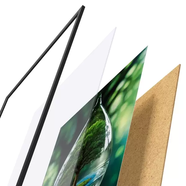 Il poster è composto da cornice, plexiglass, immagine stampata e supporto in truciolato. Il poster può essere immediatamente appeso alla parete grazie ai supporti sul retro.