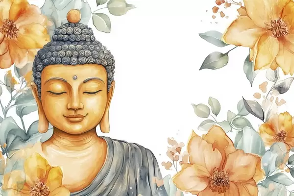 Poster Buddha circondato da fiori arancioni, stile acquerello Nr f44508