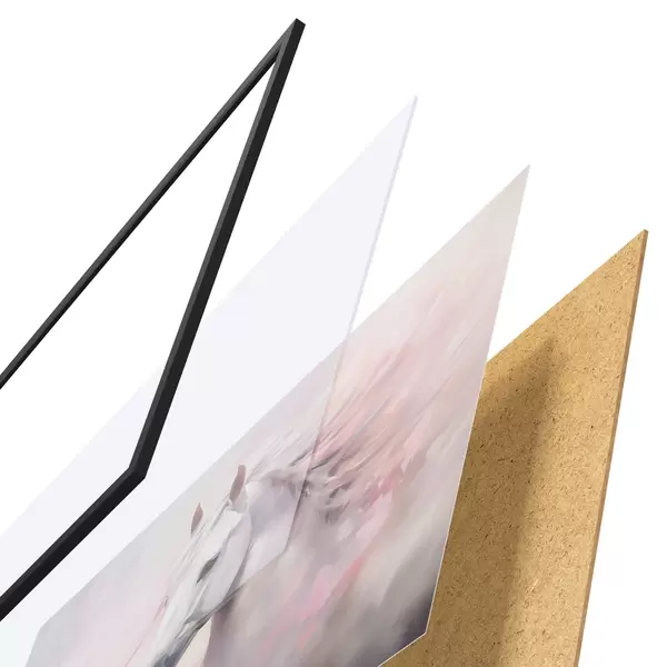 Il poster è composto da cornice, plexiglass, immagine stampata e supporto in truciolato. Il poster può essere immediatamente appeso alla parete grazie ai supporti sul retro.