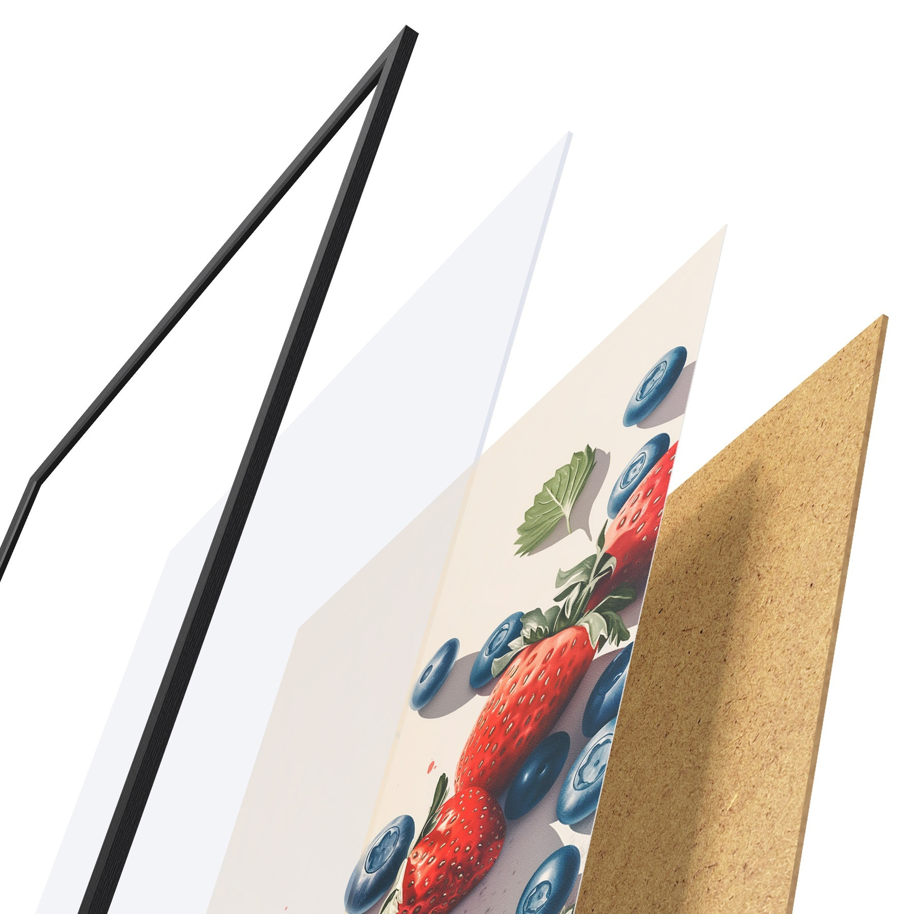 Il poster è composto da cornice, plexiglass, immagine stampata e supporto in truciolato. Il poster può essere immediatamente appeso alla parete grazie ai supporti sul retro.