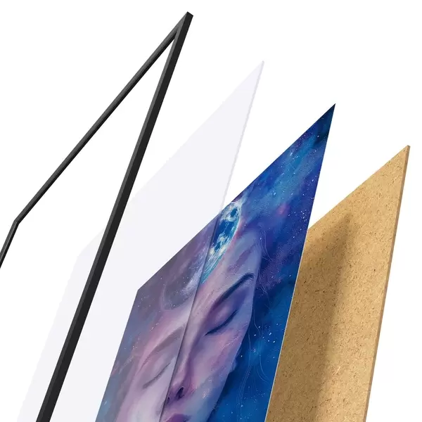 Il poster è composto da cornice, plexiglass, immagine stampata e supporto in truciolato. Il poster può essere immediatamente appeso alla parete grazie ai supporti sul retro.