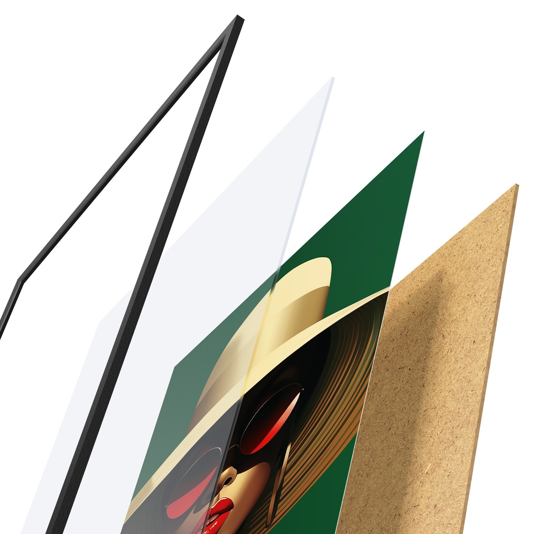 Il poster è composto da cornice, plexiglass, immagine stampata e supporto in truciolato. Il poster può essere immediatamente appeso alla parete grazie ai supporti sul retro.