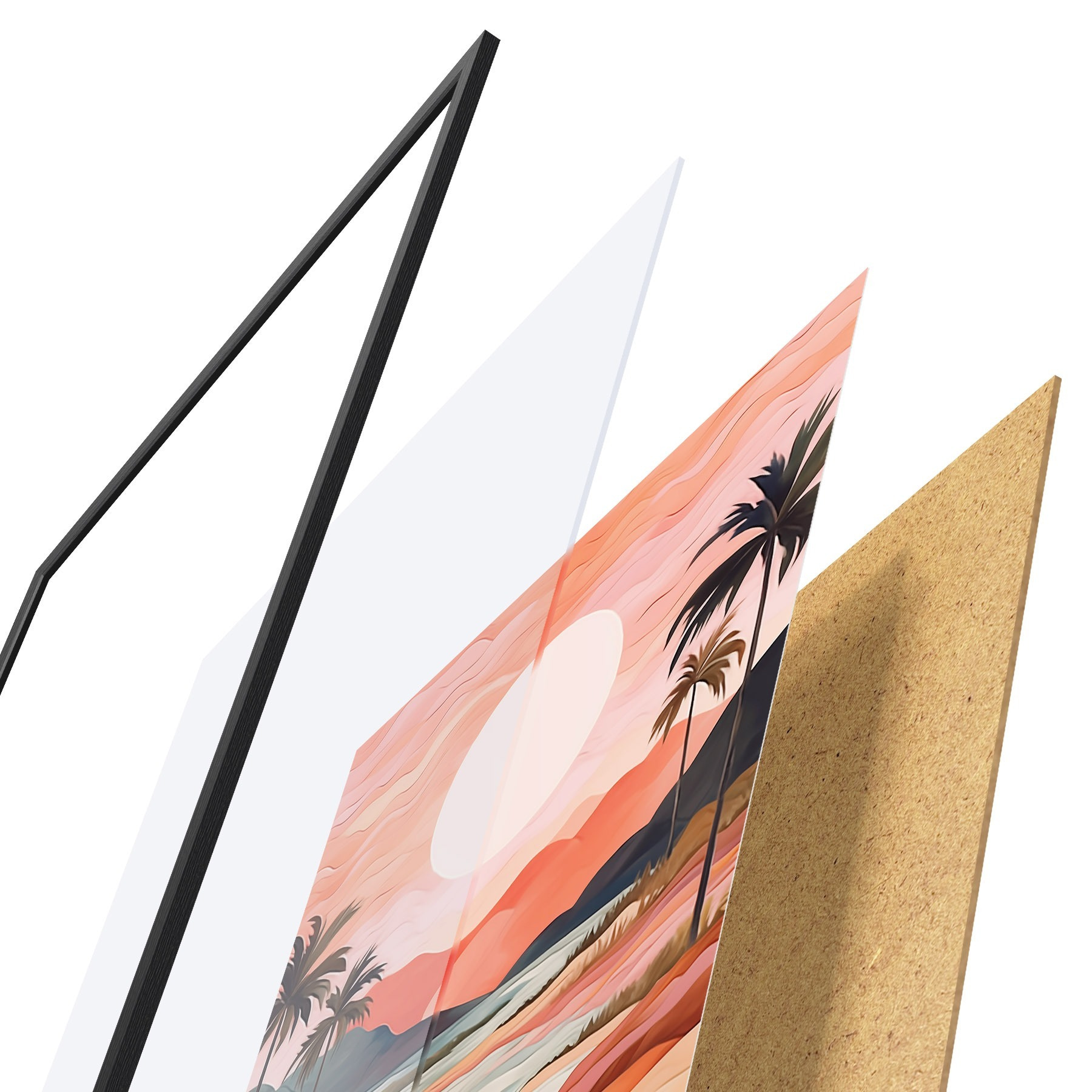 Il poster è composto da cornice, plexiglass, immagine stampata e supporto in truciolato. Il poster può essere immediatamente appeso alla parete grazie ai supporti sul retro.