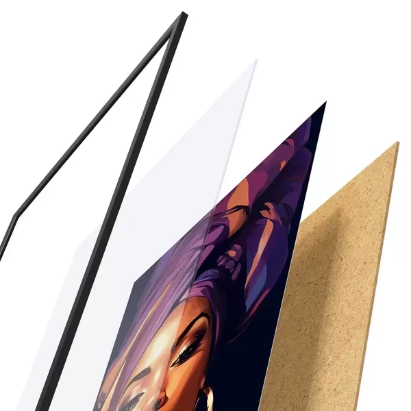 Il poster è composto da cornice, plexiglass, immagine stampata e supporto in truciolato. Il poster può essere immediatamente appeso alla parete grazie ai supporti sul retro.