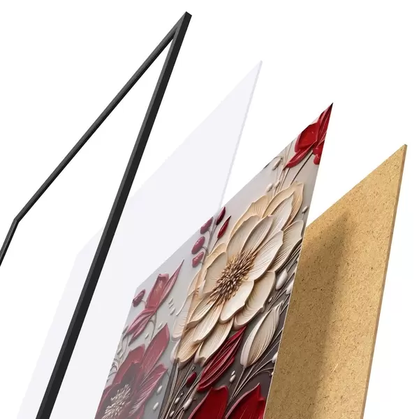 Il poster è composto da cornice, plexiglass, immagine stampata e supporto in truciolato. Il poster può essere immediatamente appeso alla parete grazie ai supporti sul retro.