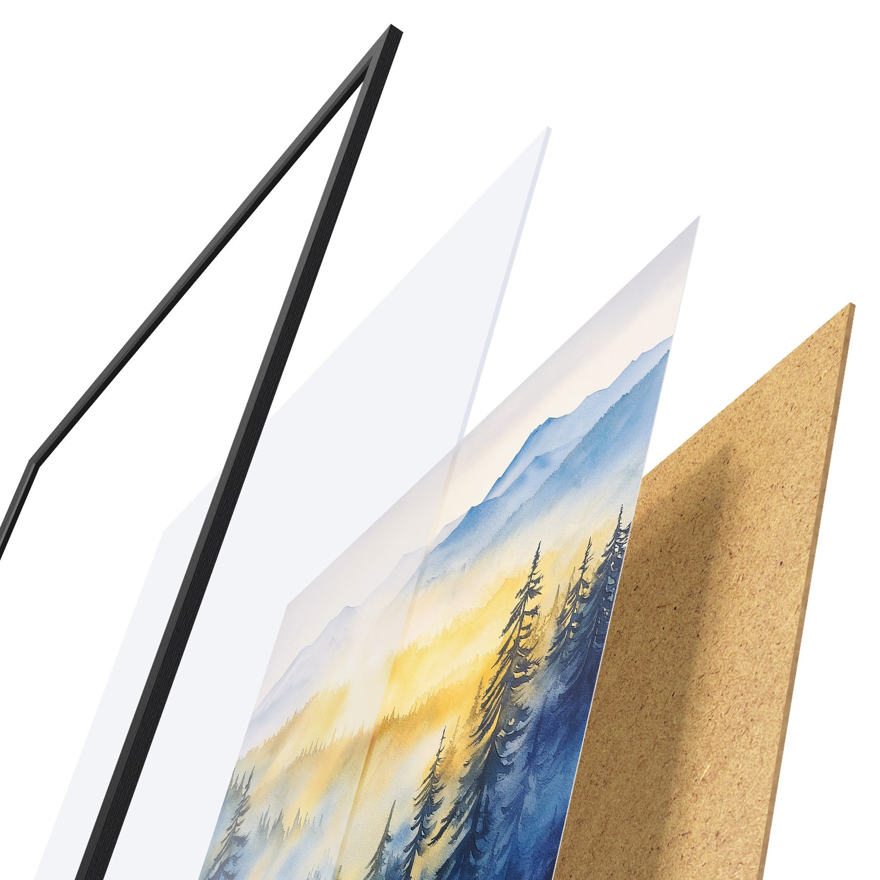 Il poster è composto da cornice, plexiglass, immagine stampata e supporto in truciolato. Il poster può essere immediatamente appeso alla parete grazie ai supporti sul retro.