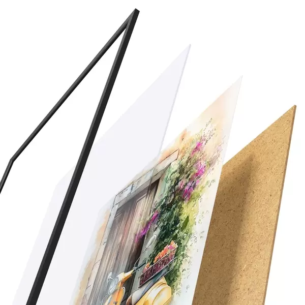 Il poster è composto da cornice, plexiglass, immagine stampata e supporto in truciolato. Il poster può essere immediatamente appeso alla parete grazie ai supporti sul retro.