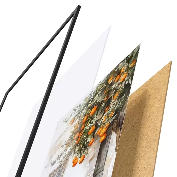 Il poster è composto da cornice, plexiglass, immagine stampata e supporto in truciolato. Il poster può essere immediatamente appeso alla parete grazie ai supporti sul retro.