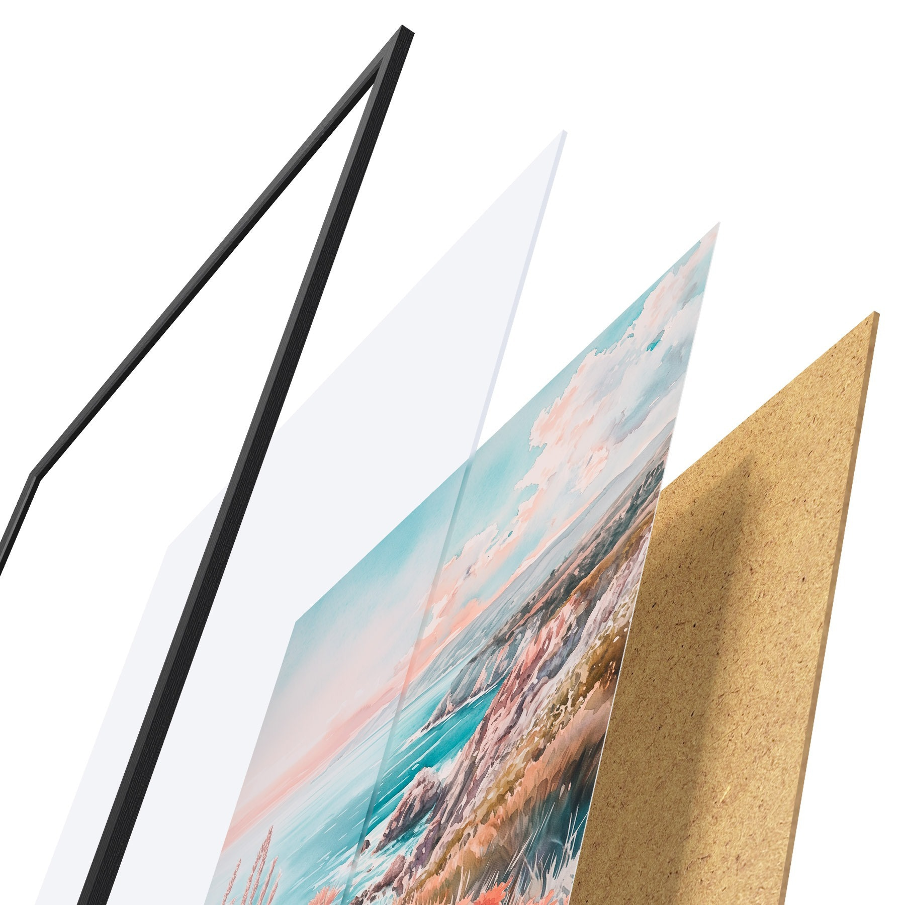Il poster è composto da cornice, plexiglass, immagine stampata e supporto in truciolato. Il poster può essere immediatamente appeso alla parete grazie ai supporti sul retro.