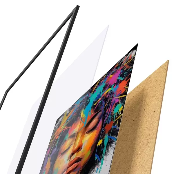 Il poster è composto da cornice, plexiglass, immagine stampata e supporto in truciolato. Il poster può essere immediatamente appeso alla parete grazie ai supporti sul retro.