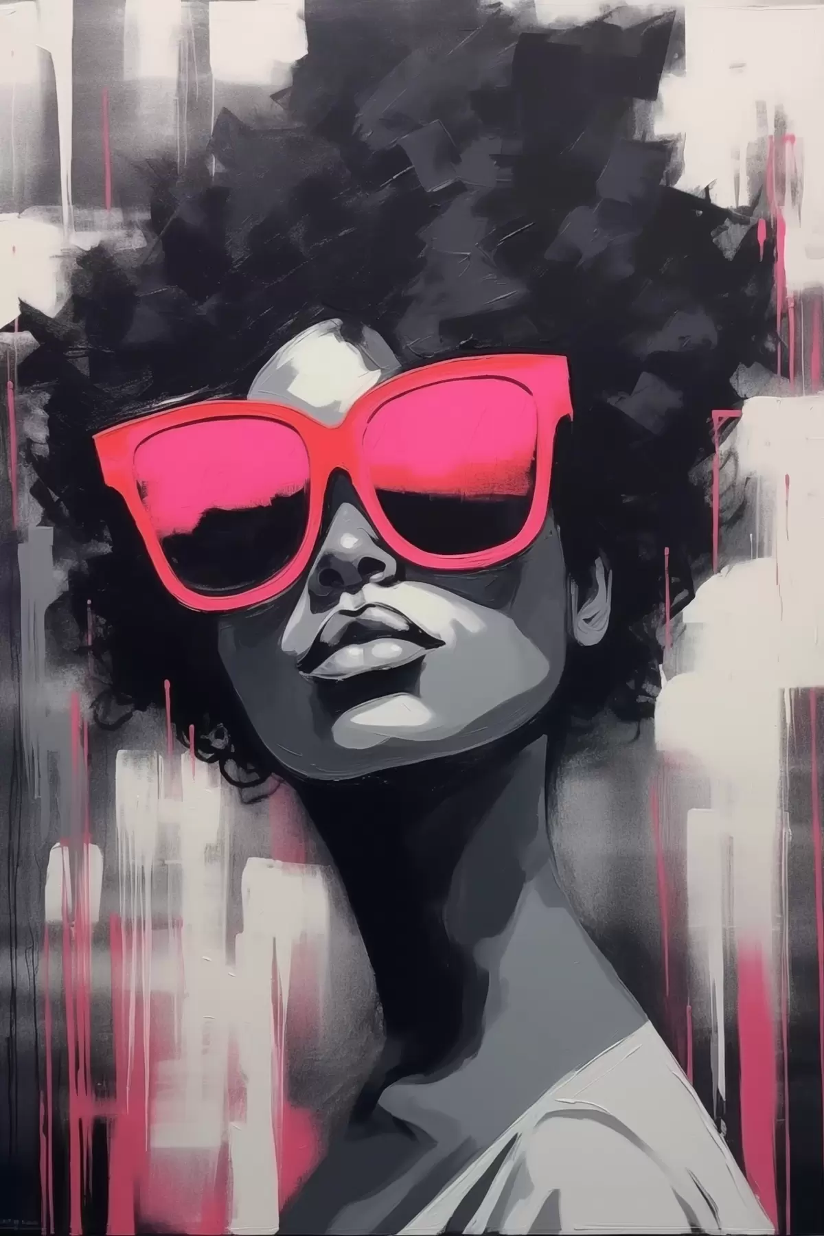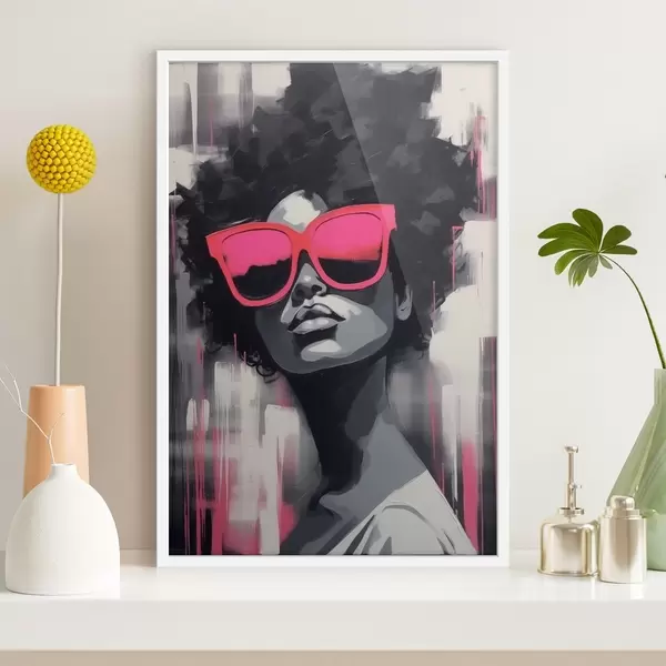 Poster Ragazza con occhiali rosa, stile bianco e nero Nr f44624