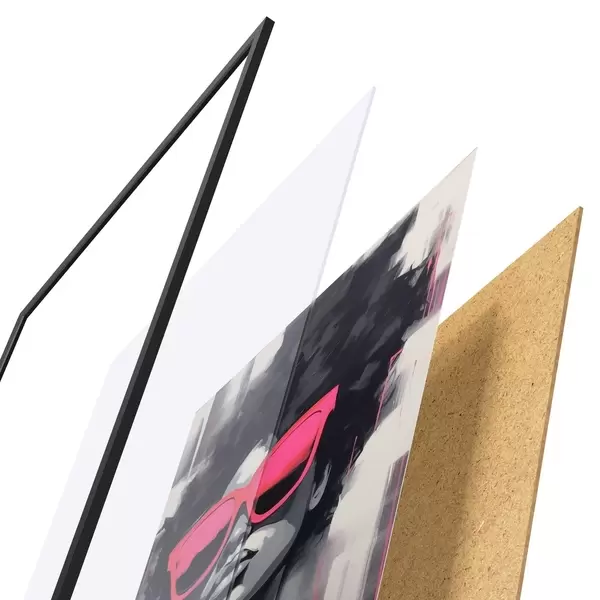 Il poster è composto da cornice, plexiglass, immagine stampata e supporto in truciolato. Il poster può essere immediatamente appeso alla parete grazie ai supporti sul retro.