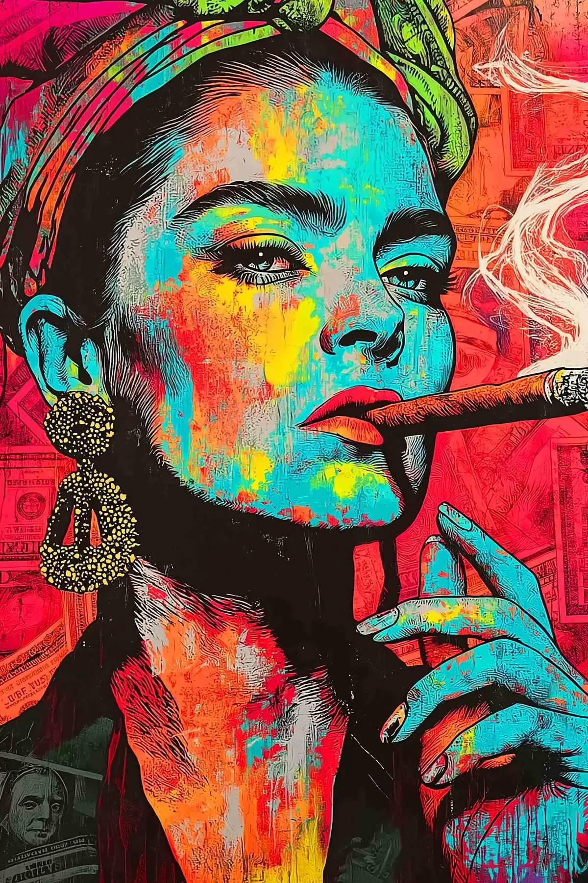 Poster Ragazza con sigaro, stile pop art Nr f44625