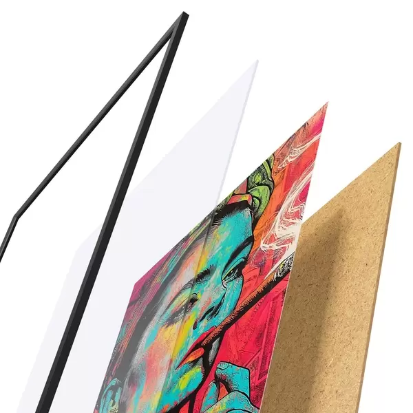 Il poster è composto da cornice, plexiglass, immagine stampata e supporto in truciolato. Il poster può essere immediatamente appeso alla parete grazie ai supporti sul retro.