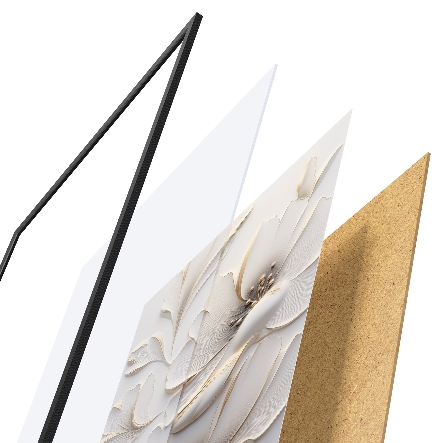 Il poster è composto da cornice, plexiglass, immagine stampata e supporto in truciolato. Il poster può essere immediatamente appeso alla parete grazie ai supporti sul retro.