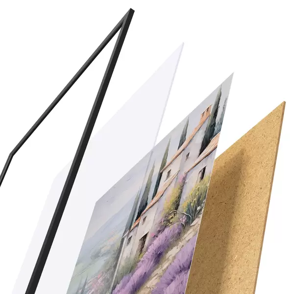 Il poster è composto da cornice, plexiglass, immagine stampata e supporto in truciolato. Il poster può essere immediatamente appeso alla parete grazie ai supporti sul retro.