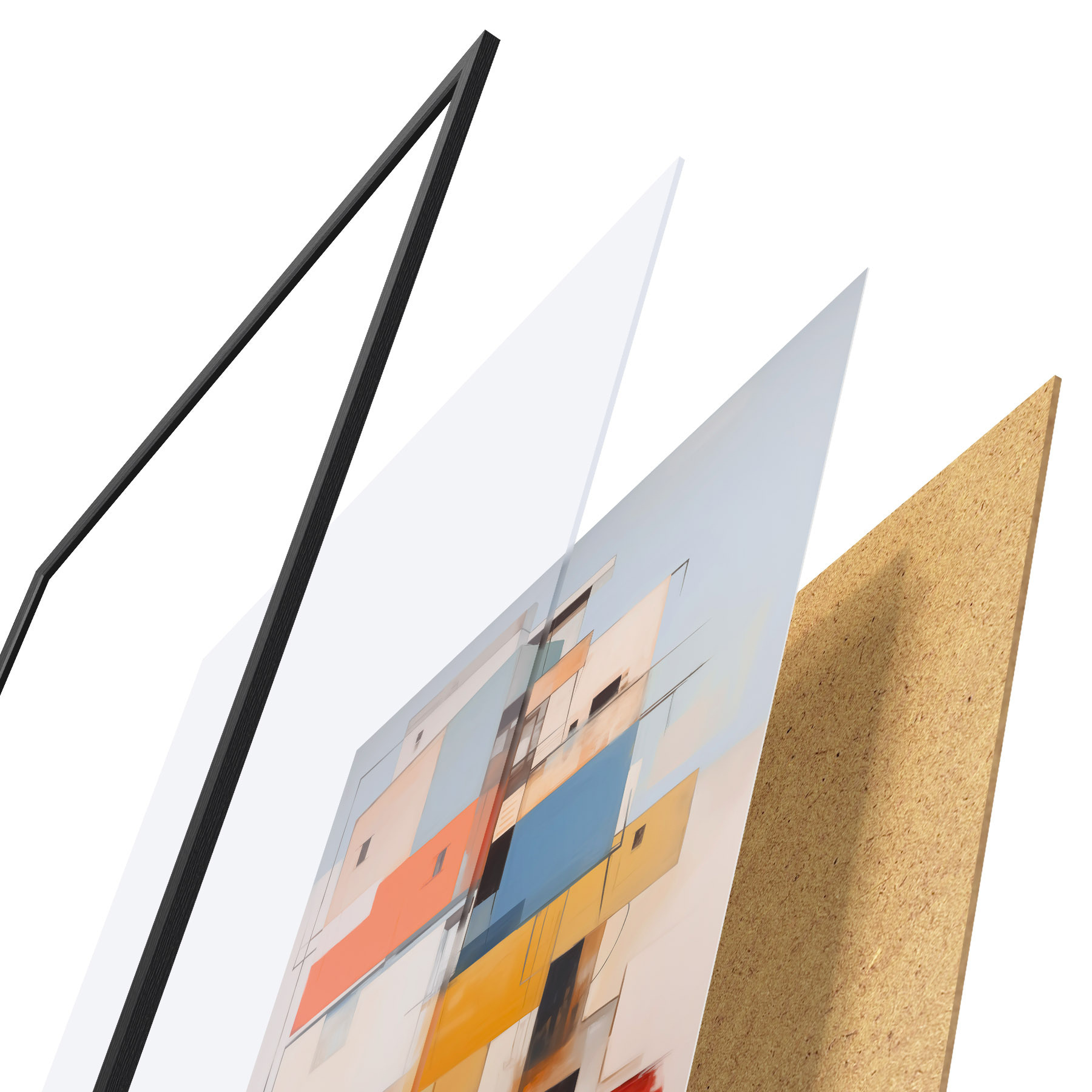 Il poster è composto da cornice, plexiglass, immagine stampata e supporto in truciolato. Il poster può essere immediatamente appeso alla parete grazie ai supporti sul retro.