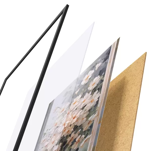 Il poster è composto da cornice, plexiglass, immagine stampata e supporto in truciolato. Il poster può essere immediatamente appeso alla parete grazie ai supporti sul retro.