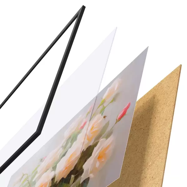 Il poster è composto da cornice, plexiglass, immagine stampata e supporto in truciolato. Il poster può essere immediatamente appeso alla parete grazie ai supporti sul retro.