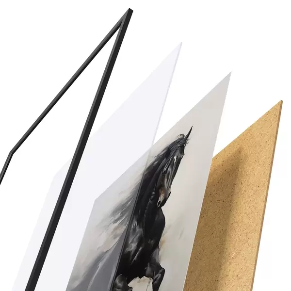 Il poster è composto da cornice, plexiglass, immagine stampata e supporto in truciolato. Il poster può essere immediatamente appeso alla parete grazie ai supporti sul retro.