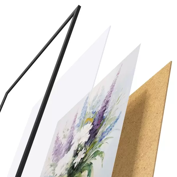 Il poster è composto da cornice, plexiglass, immagine stampata e supporto in truciolato. Il poster può essere immediatamente appeso alla parete grazie ai supporti sul retro.