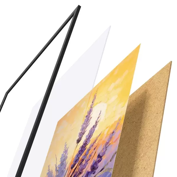 Il poster è composto da cornice, plexiglass, immagine stampata e supporto in truciolato. Il poster può essere immediatamente appeso alla parete grazie ai supporti sul retro.
