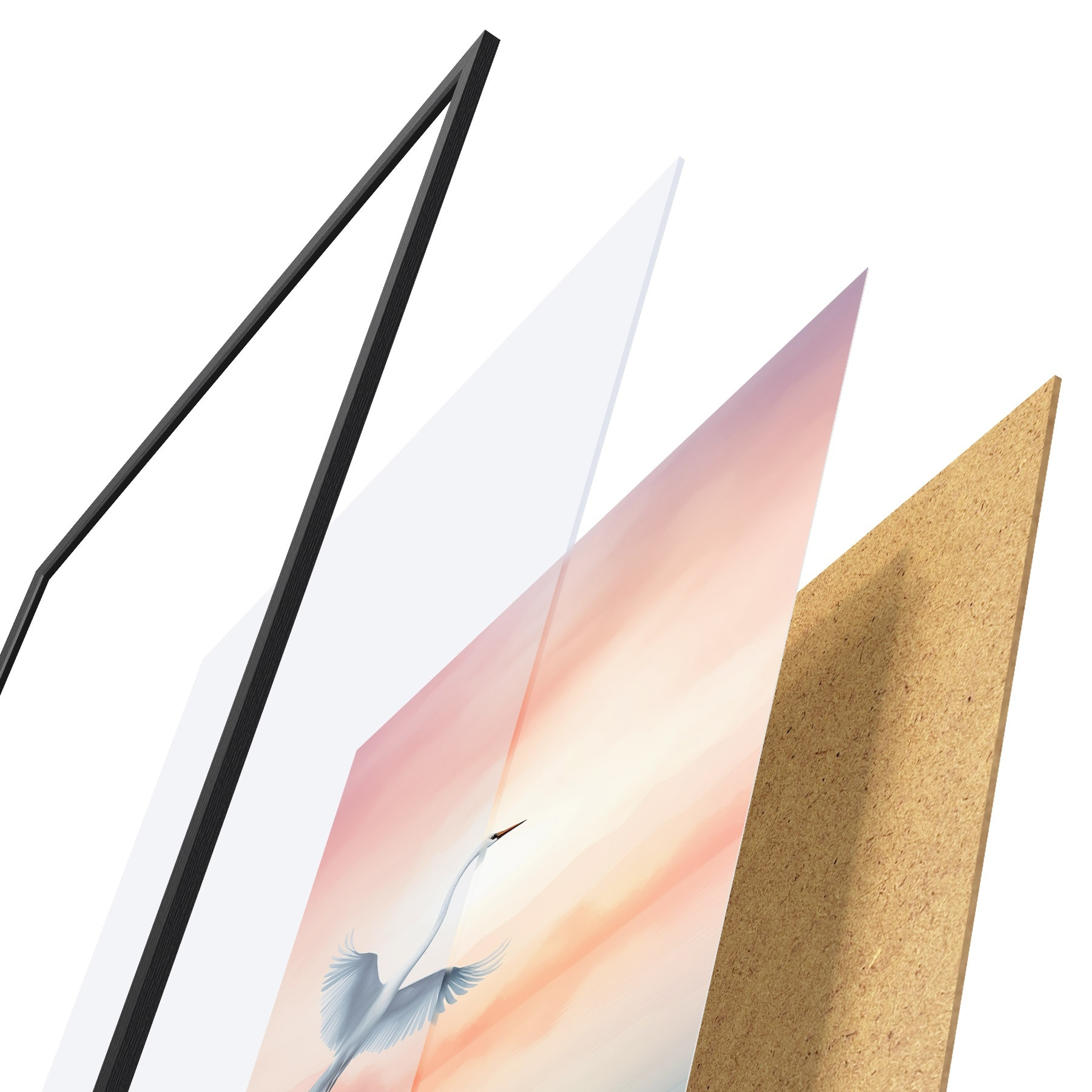 Il poster è composto da cornice, plexiglass, immagine stampata e supporto in truciolato. Il poster può essere immediatamente appeso alla parete grazie ai supporti sul retro.