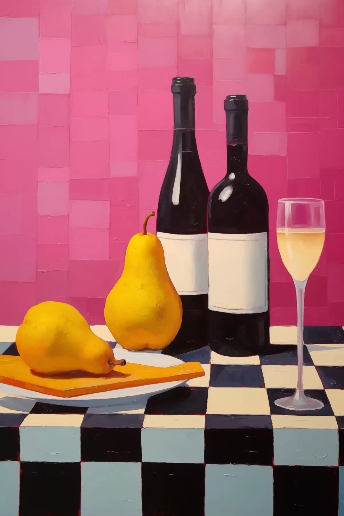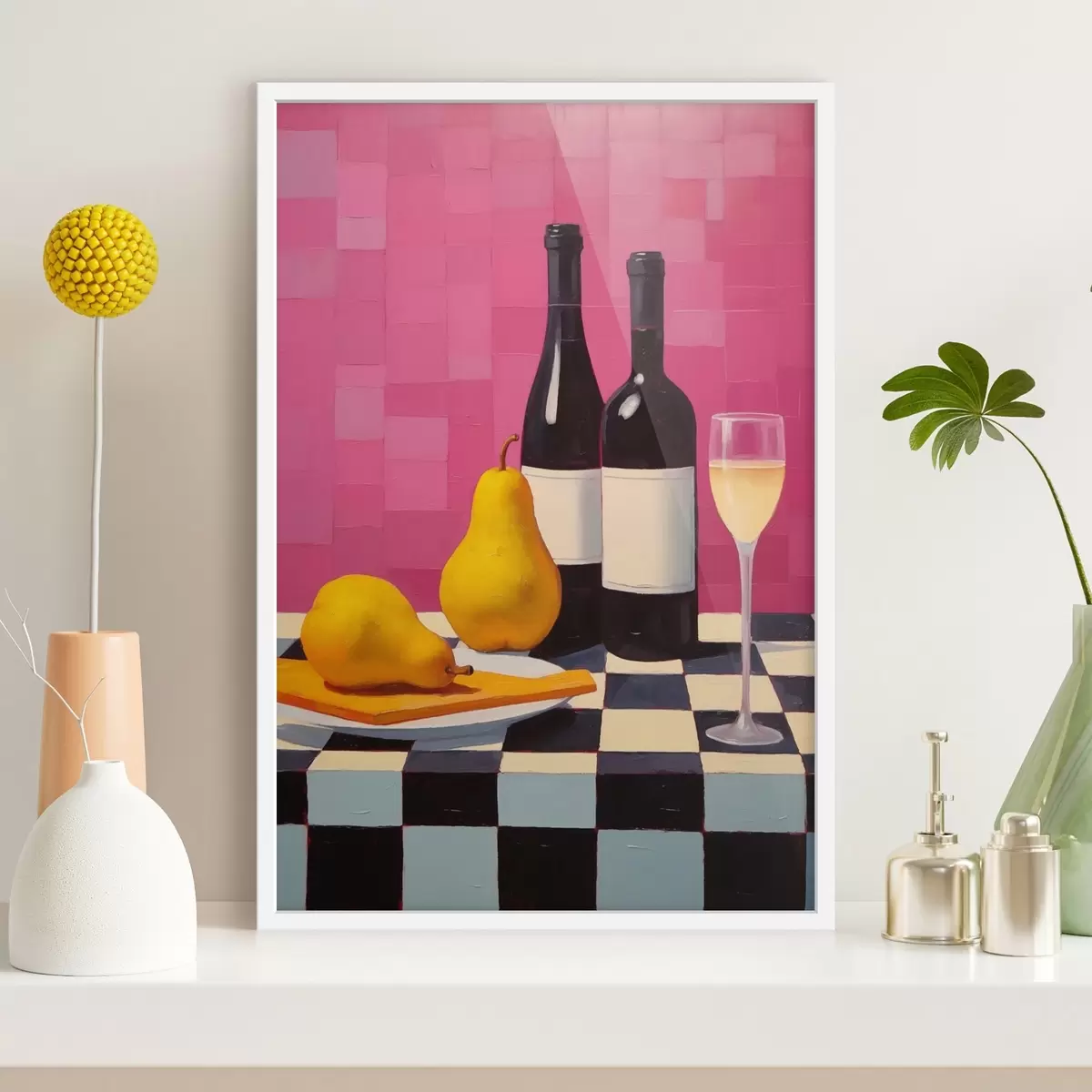 Poster Pere, un bicchiere di vino e due bottiglie di vino f44683