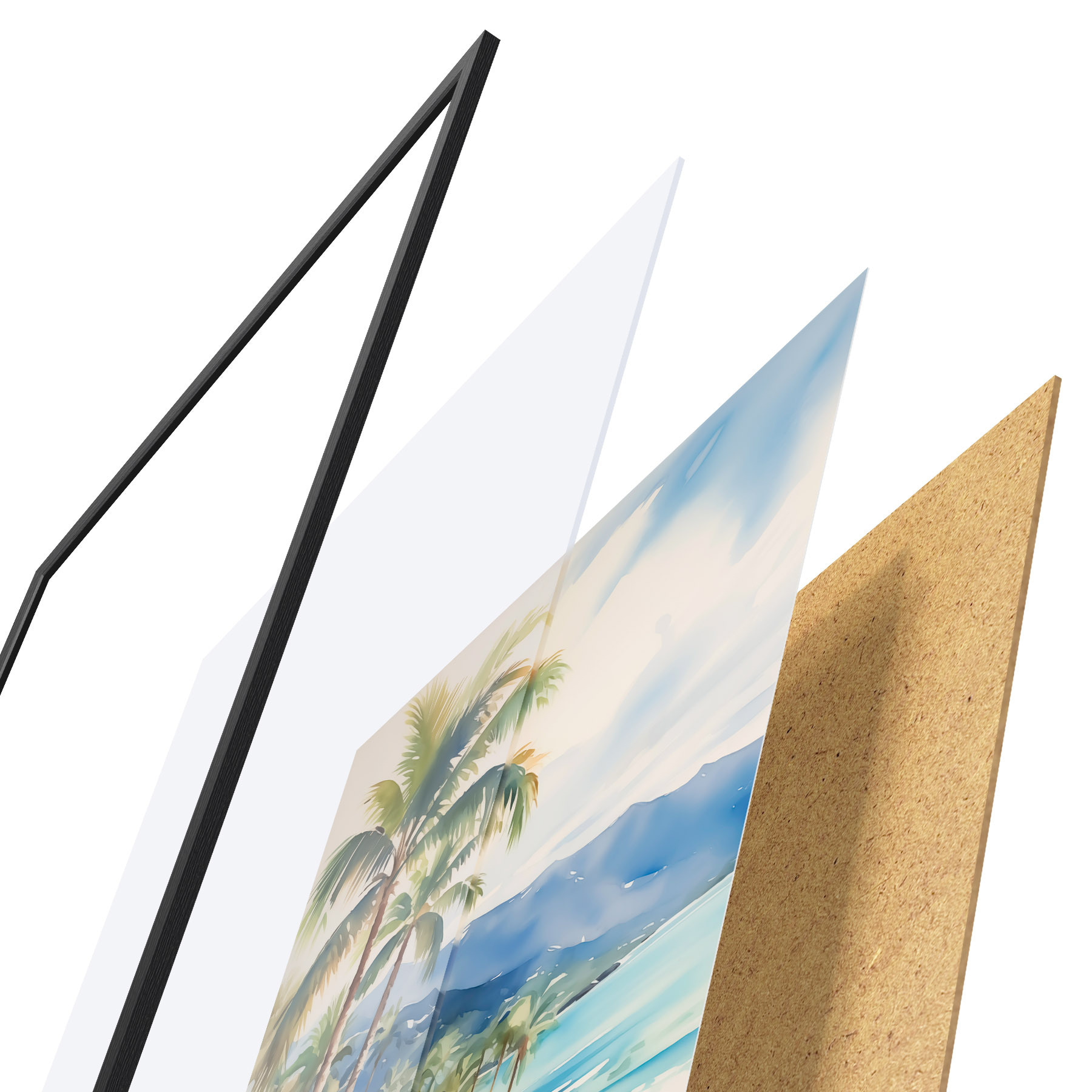 Il poster è composto da cornice, plexiglass, immagine stampata e supporto in truciolato. Il poster può essere immediatamente appeso alla parete grazie ai supporti sul retro.