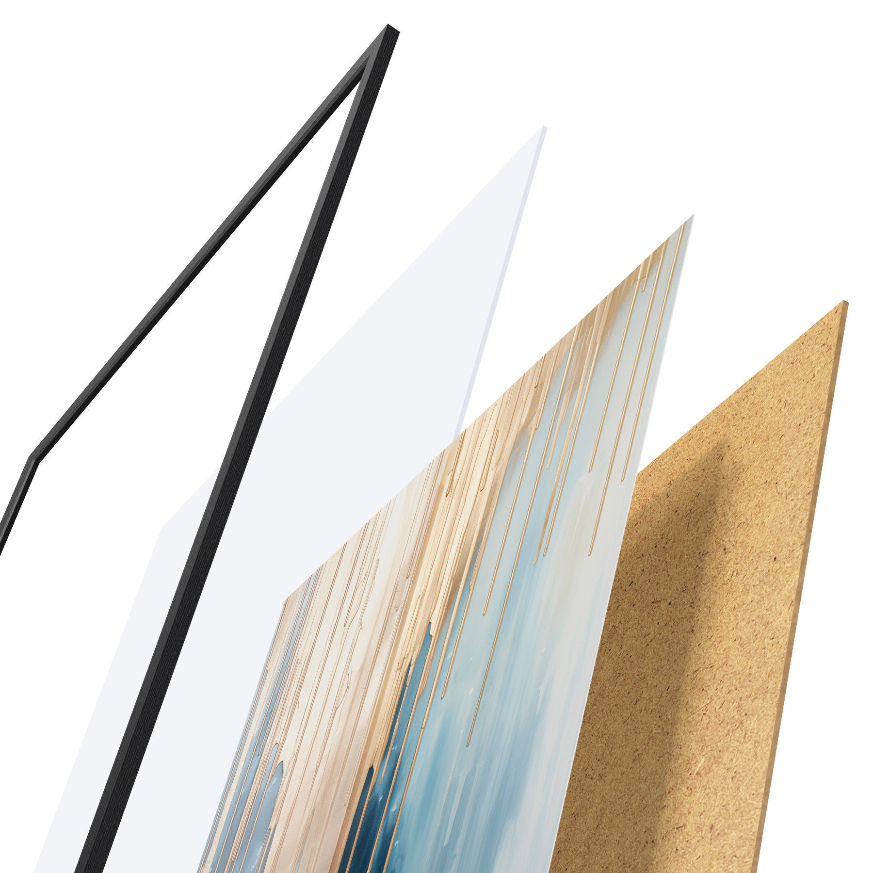 Il poster è composto da cornice, plexiglass, immagine stampata e supporto in truciolato. Il poster può essere immediatamente appeso alla parete grazie ai supporti sul retro.