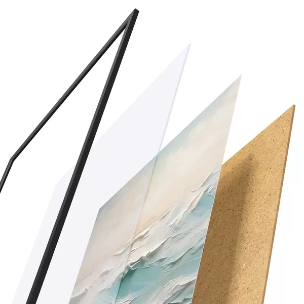 Il poster è composto da cornice, plexiglass, immagine stampata e supporto in truciolato. Il poster può essere immediatamente appeso alla parete grazie ai supporti sul retro.