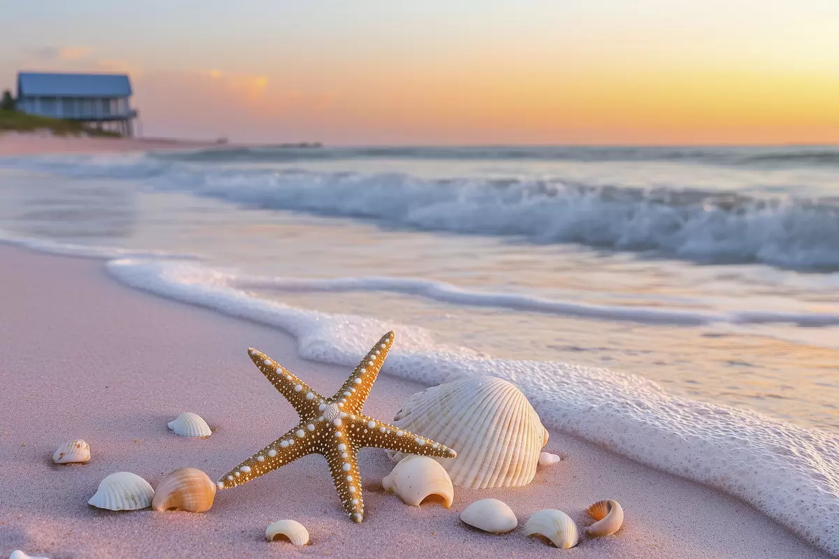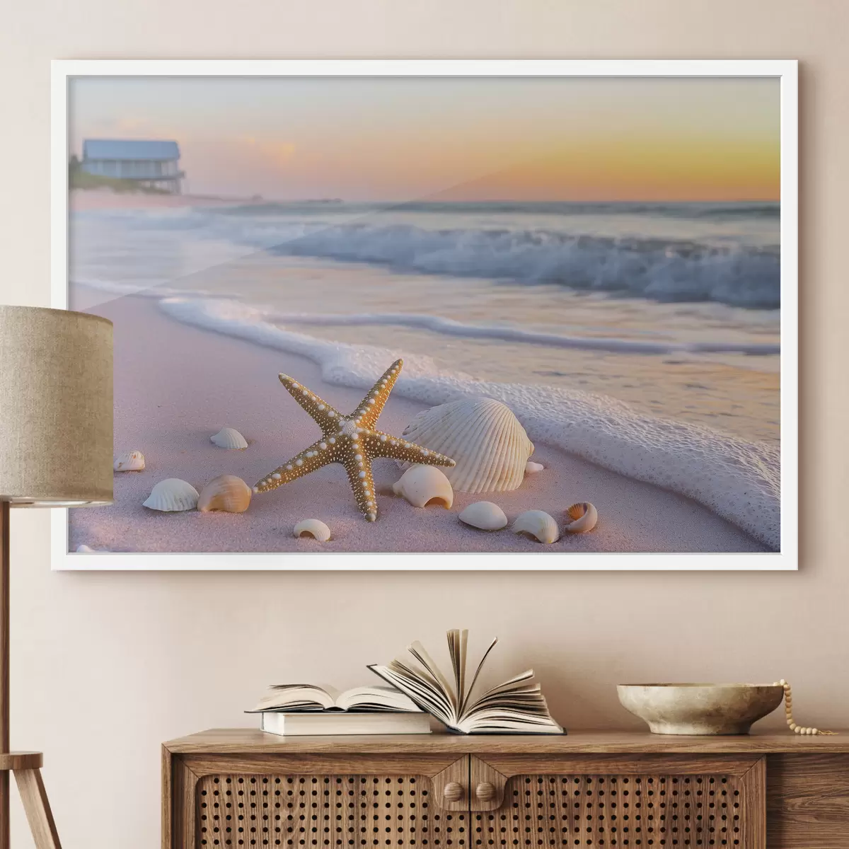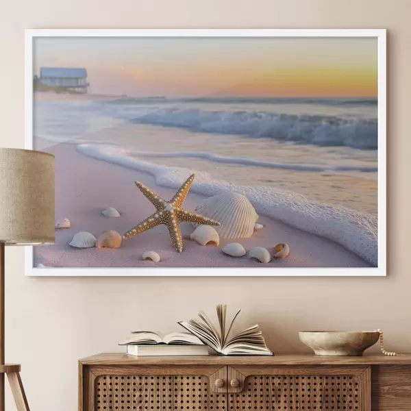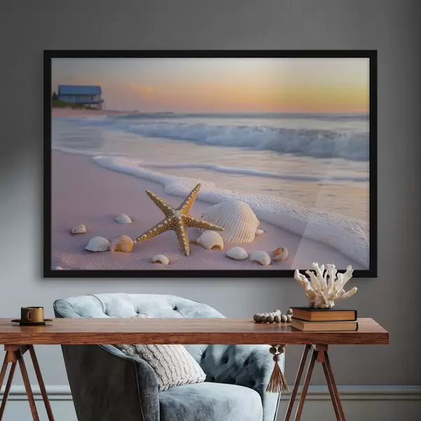 Poster Costa marina con stelle marine, conchiglie e onde Nr f44714