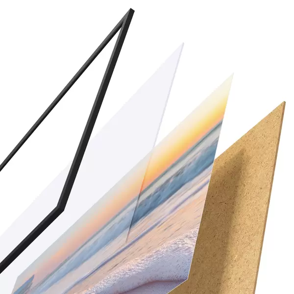 Il poster è composto da cornice, plexiglass, immagine stampata e supporto in truciolato. Il poster può essere immediatamente appeso alla parete grazie ai supporti sul retro.
