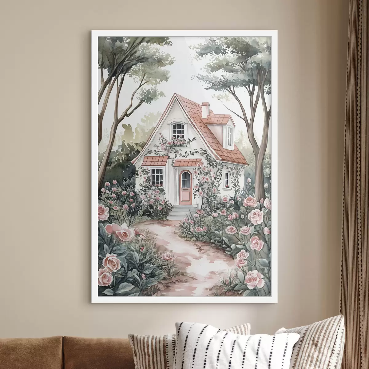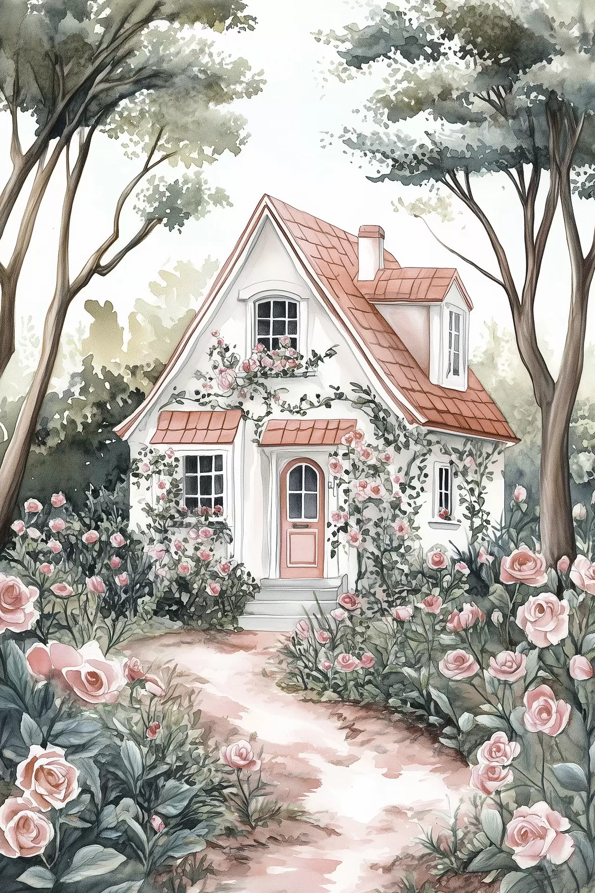 Poster Casa bianca con giardino di rose nel bosco Nr f44716